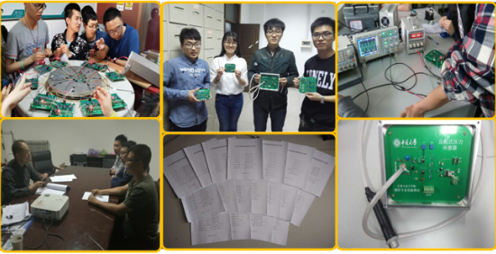 在指导教师和同学们的共同努力下,测控专业实践环节经过一个月的运行,已成功的完成了前期的理论教学和第一个以传感器信号调理、测试标定为核心的实践环节。通过此轮培训,测控专业13级229名本科学生以2-4人每个课题小组的形式,完成了温度传感器、加速度传感器、压力传感器三类共60个传感器的设计与仿真、电路焊接与调试和传感器指标的标定工作。