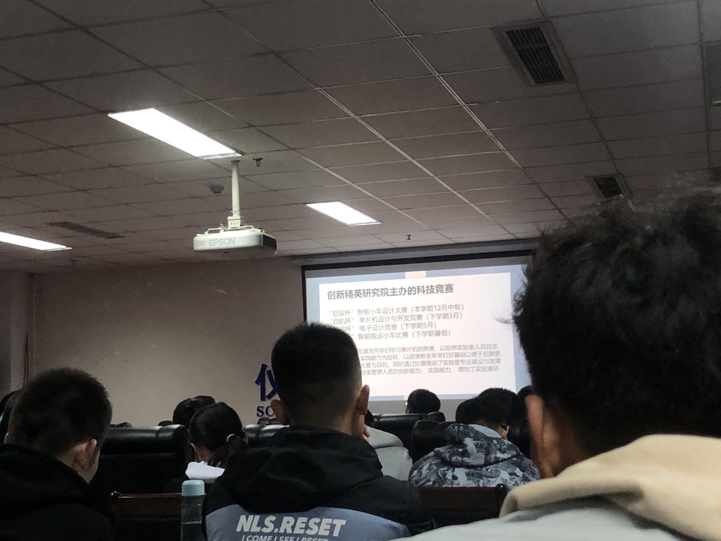 首先,张一帆主席通过一个宣传视频,简单介绍了创新精英研究院。新生们了解到了研究院的组成,也看到了各实验室的研发成果。不仅感受到了实验室良好的学习氛围,也对实验室十分感兴趣。接下来,张一帆主席详细的讲解了仪器测量实验室的发展方向,使新生更加明确接下来的学习内容。通过张一帆主席对各类比赛的介绍,新生也更加明确了即将迎来的挑战。