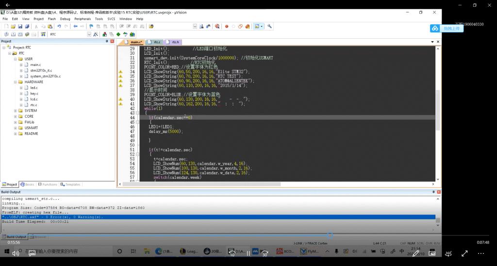 本次培训主要讲解了之后比赛可能会用到的RTC时钟实验,按键实验,屏幕显示等内容,介绍了一些简单的例程、功能函数等,了解了如何设置按键去实现一些功能,并且帮助解决了同学们在先前学习过程中遇到的一些问题等,最后带领大家重温了上节课的内容。