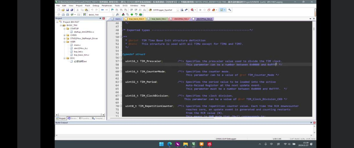本次培训由机器人创新实验室副主席李昊麟主持,23级的同学们参加了本次科普培训。在此次培训中,李昊麟围绕着按键和外部中断等相关知识进行了详细耐心的讲解,本节课讲解内容有:基本定时器框图,1分频内部时钟和2分频内部时钟的计数器时序图,时钟源,TIM6和TIM7控制寄存器,TIM1和TIM6主要特性,TIM1和TIM8简介等一系列内容。