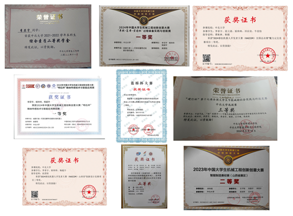 综合素质奖学金,在科研竞赛方面,曾获过程装备实践与创新大赛国家一等奖,睿抗机器人开发者大赛国家二等奖,互联网+大学生创新创业大赛省级金奖,蓝桥杯省级二等奖等国家级奖项2项,省级,校级奖项10余项。