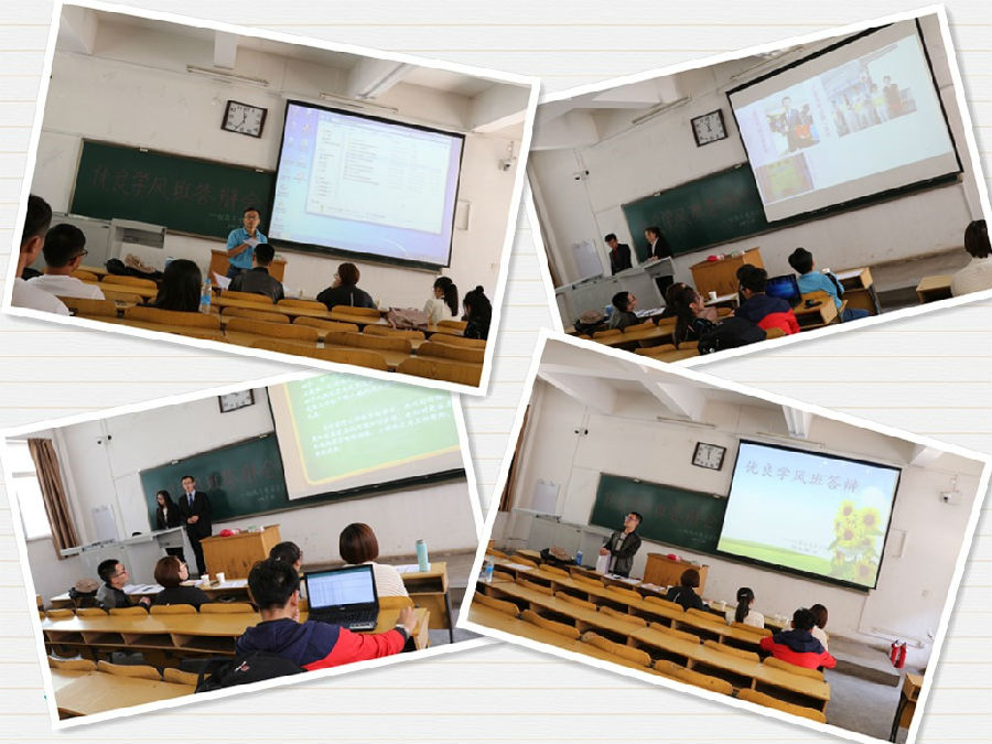 2016年度秋季优良学风班答辩在10103举行。本院杨湖书记,学生科范钧朝老师、王旭老师、张朝艳老师、王蕾老师等出席了本次活动。