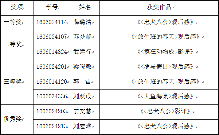 催眠av “绘心阁”心理辅导站举办的“心灵之旅”优秀心理电影展播活动已经结束。在之后举办的“相邀电影,回顾青春”优秀心理电影影评大赛中,同学们积极参与,我们共收到百余篇影评。经过“绘心阁”指导老师王蕾及各部部长审核、评选,我们选出一些洋溢着自己情感和理想的优秀作品给予奖励。现将评选结果公布如下: