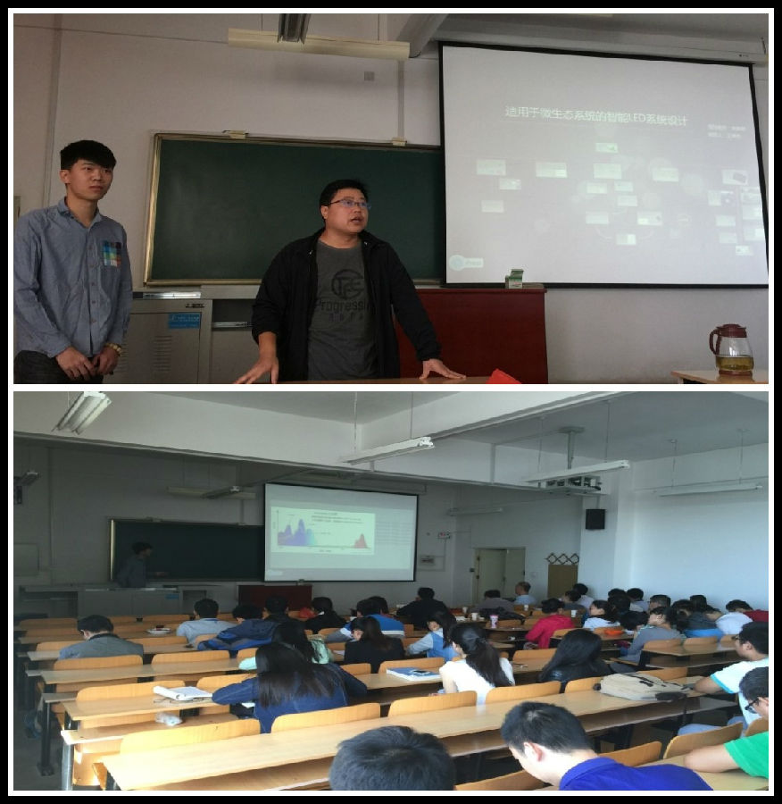 本次汇报的主题是《适用于微生态系统的智能LED设计》。王玮琳同学提出了通过调节外部光源来平衡微生态系统的新想法。