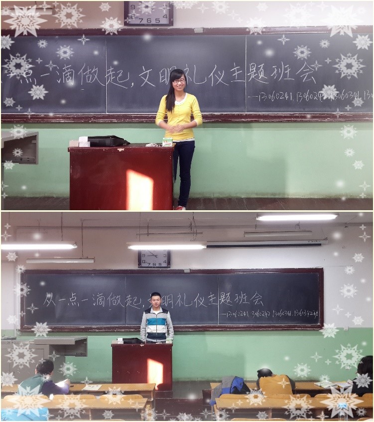 11月11日下午,14060341,14060342,14060343三个班请崔丹凤老师举办了一场文明礼仪主题班会。会上老师讲述各种关于文明礼仪的实例,生动形象地表达了文明礼仪的重要性。文明礼仪,不仅是个人素质、教养的体现,也是个人道德和社会公德的体现;更是城市和国家的脸面。所以,学习礼仪不仅可以内强个人素质、外塑单位实力,更能润滑和改善人际关系。
