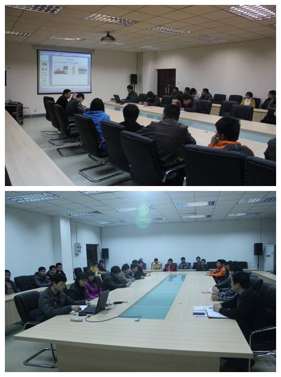 2014年11月21日晚20:00-22:00,王红亮导师主持召开例会。会议首先由王老师指导的研究生崔娟、何少恒、张亮红和刘伟分别作了专题学术报告。其中,崔娟作了关于《CMUT阵列设计和成像机理研究》的专题报告;何少恒作了关于《数字量变换器测试台工作原理与研制》的专题报告;张亮红作了关于《上位机软件设计》的专题报告;刘伟作了关于《高速大容量数据记录仪》的专题报告,在场的本科生对报告内容都表现出浓厚的兴趣。王老师对报告内容做了总结,并对部分内容进行了解释说明。