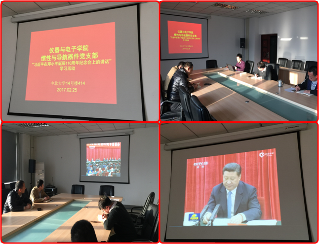 2017年2月25日下午17:00,惯性与导航器件党支部在催眠av 14号楼414召开开学以来第一次党组织活动,活动主题为“习近平在邓小平诞辰110周年纪念会上的讲话”学习,参与学习活动的党员包括李杰、张晓明、曹慧亮、刘文耀、申冲等多名党员。会上,大家首先对讲话进行了学习,随后各位党员对讲话进行了深入探讨,并将讲话精神与教学科研进行了结合。会后各位党员普遍反映通过这次学习受益良多。