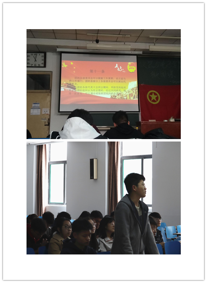 在团课上,团员们就关于团章的相关知识进行了激烈的讨论和学习。大家充分认识到团的重要性,各团员阐述了结合现实生活对共青团的认识及理解。在团课中团支书幽默风趣,精心为同学们准备团课,同学们积极的参与课堂提问,积极提出问题发表见解,促进了团课的开展。在活动中同学们不仅得到了知识,还得到了快乐,增进了友谊,增强了互相了解,至此,我们的本次团课的学习活动取得圆满结束!