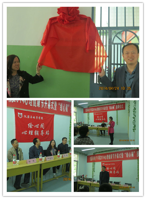 2014心理健康节开幕式暨“绘心阁”授牌仪式在03304举行。院党委书记秦丽老师、学生处处长邱建国老师、学生处屠明老师,院党委副书记杨湖老师等出席了本次授牌仪式,同时还有各班心理联络员以及一些对心理学感兴趣的同学也参加了这次活动。