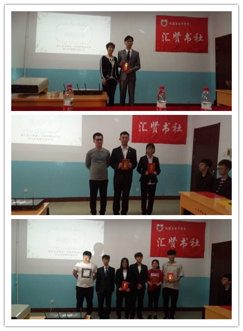 经过激烈的角逐,获得一等奖的是贾尚盐《我的心》,获得二等奖的是赵名坤《杨开慧写给毛主席的信》、高岩《天狗》,获得三等奖的是常华忠小组《让我留在你身边》、裴欣蓉小组《我是生命永恒的帝王》、李建薪小组《瓶邪》。颁奖合影之后,比赛在团委书记荆伟伟老师总结后完美落幕。