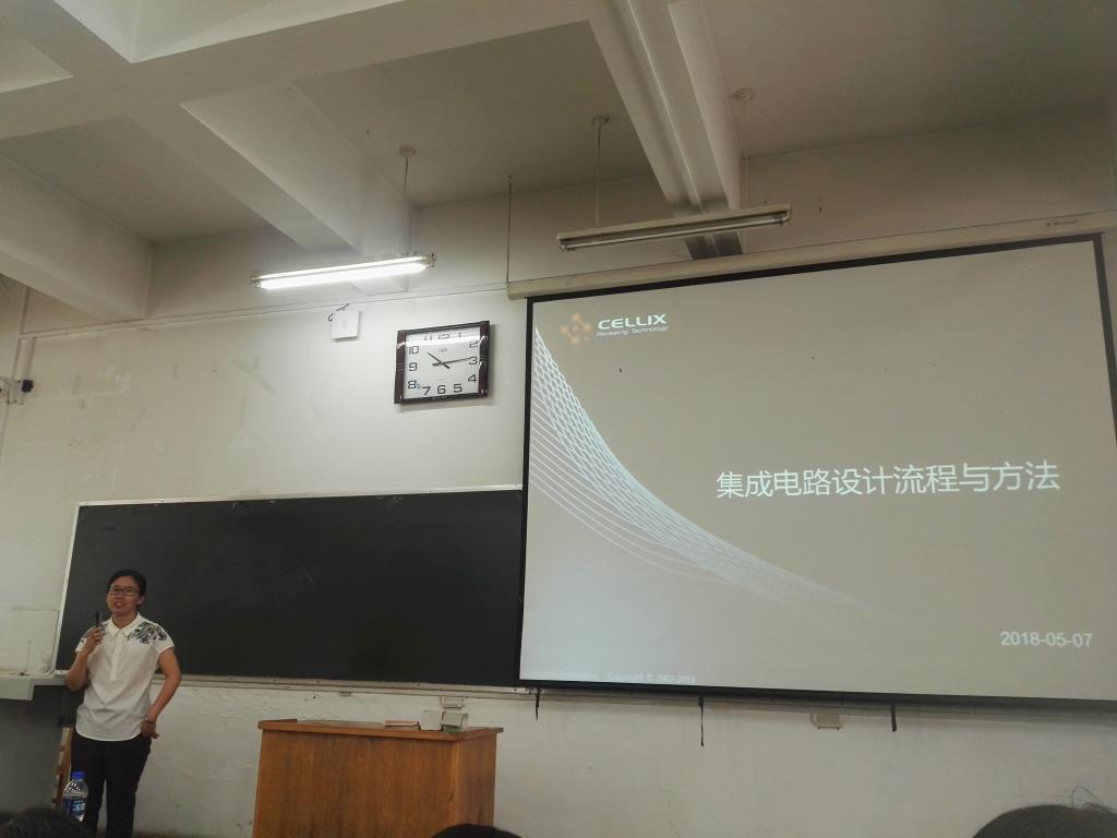 组织全体2015级微电子科学与工程专业学生在10102H教室听取了北京芯愿景公司专家的讲学。此次集成电路综合实践模块交流邀请了北京芯愿景公司苏会静和徐惠芬两位老师,微电子科学与工程专业学科部副主任梁庭老师、微电子专业朱平老师、梁涛老师、崔丹凤老师也参加了此次讲学。