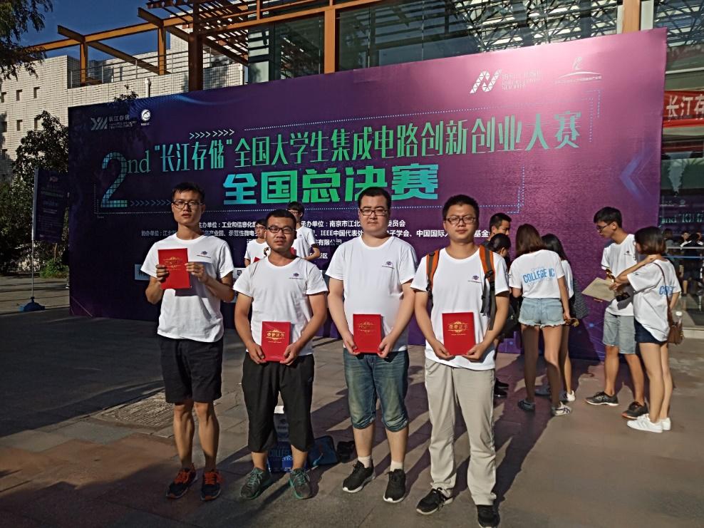 三支队伍与全国100多支队伍进行角逐,最终斩获全国三等奖2名,全国优秀奖1名,同时,我校还获得第二届“长江存储”全国大学生集成电路创新创业大赛优秀组织奖。