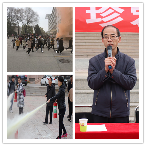 老师荆伟伟、李晨鑫等对本次消防演练表示了肯定,并重点强调了,全体师生要重视对火灾等各类安全事件的防范以及对突发事件应变能力的提高,接下来保卫科科长史志强开始对学生讲解如何逃生自救、如何正确报警等消防知识,用火、用电等注意事项,还向同学们讲解消防器材的基本知识和灭火器使用方法,使同学们了解消防器材,懂得怎样利用灭火器扑救初起火灾。