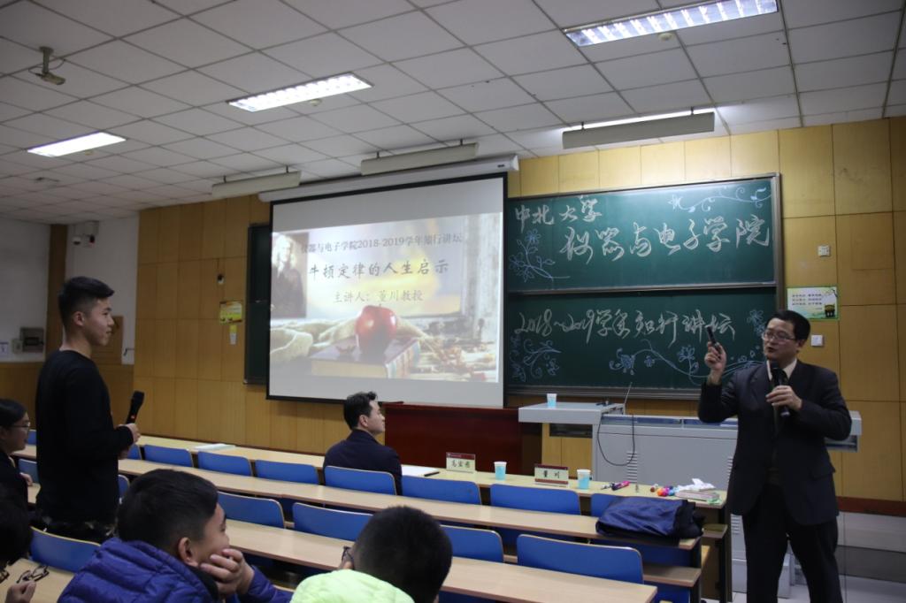 在11209H教室举办2018-2019学年秋季学期知行讲坛。本次讲坛邀请的主讲人为山西大学教授、博士生导师、环境科学研究所所长、职称办主任董川老师。董老师擅长从自然科学的角度探索人文哲理,此次他就以“牛顿定律的人文启示”为主题与催眠av