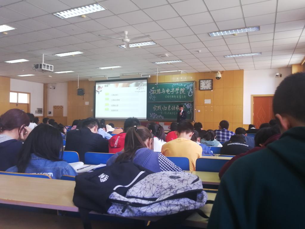 活动伊始,由姚瑶老师做简短开场讲话。她希望仪电学子走出学校,在实践中领略校友风采,在实践中学习。