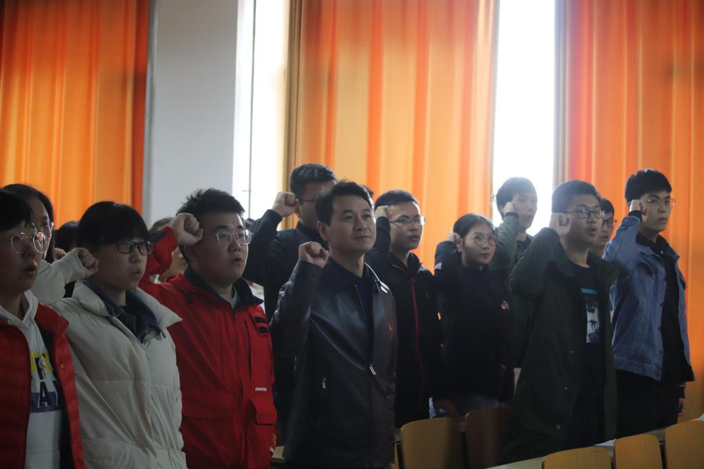 党课正式开始前,院党委宏图副书记带领全体党员和预备党员进行宣誓,重温入党誓言,体会入党初心。
