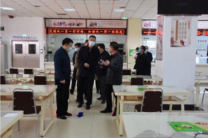 校领导一行先后来到主校门、物流配送中心、学生食堂、学生公寓、化工实验室、校医院、隔离宿舍等重点区域进行实地检查。认真听取各相关单位负责人汇报后,校领导仔细查看并与现场工作人员进行交流,详细了解具体操作和应对措施是否明确、到位。通过检查,我校毕业年级开学准备工作已基本就绪。同时,校领导针对存在的一些细节问题提出改进要求,特别是就做好学生入校报到登记和体温检测、如何确保学生就餐秩序、开展好对需要隔离学生的服务、明确应急处置流程等关键点做出进一步的指导。