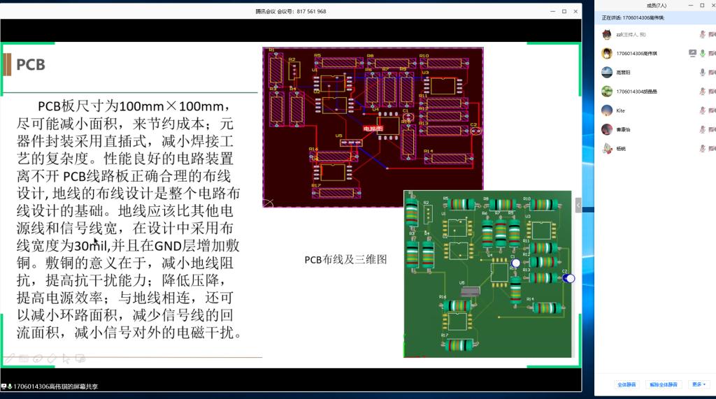 由于疫情的影响,温度实践模块采用线上教学的方式进行。在郝晓剑老师和高晋阳老师的授课和指导下,同学们学习了温度传感器及电路的知识。然后学生们以两人一个小组的形式在线上合作学习,设计了温度传感器采集、放大、滤波电路,对设计的电路进行仿真分析,设计了PCB板,撰写了设计报告。4月21日,郝晓剑老师和高晋阳老师通过线上会议的方式对学生们的设计仿真结果进行了检查。学生们按照分组顺序依次进行了答辩,通过PPT演示、屏幕分享等方式对自己的设计进行了讲解、演示。郝晓剑老师和高晋阳老师对学生们的答辩进行了指导,指出了设计以及撰写报告中存在的问题,学生们针对自己的问题进行了学习。温度实践模块让学生们的创新能力进行全面的训练与提升,学生们认真听讲,详细记录,通过目前的学习,学生们扩宽了思路、开阔了视野、强化了学习与研究意识。