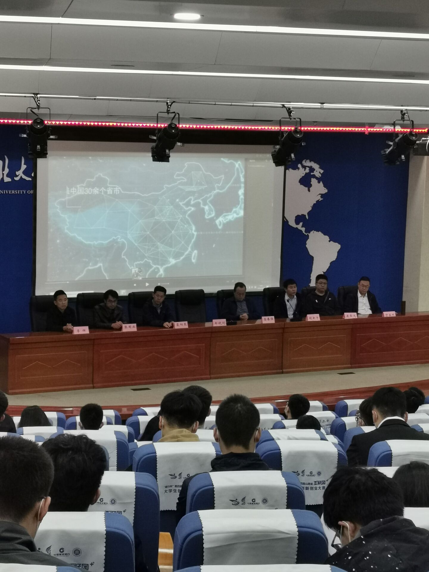 上午9点,领导嘉宾入场,应邀嘉宾有校党委副书记薛智,学生工作部部长李俊华,教务处副处长高春强,院党委书记郝晓剑,院党委副书记高宏图,曹慧亮老师,闫晓燕老师,请到的评委老师有王康谊老师,胡欣宇老师,宋昌老师,高嘉伟老师,雷瑞伟老师,许清梅老师,其中薛智书记和高宏图书记分别为本次大赛致辞,预祝各参赛队伍都能取得优异成绩。之后,领导嘉宾在背景墙前合照。