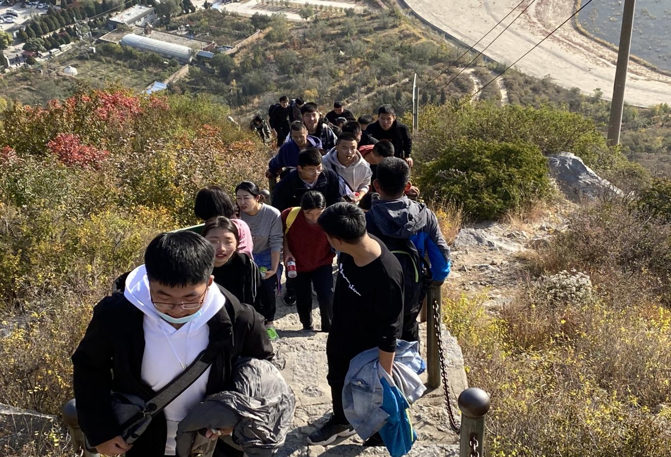 同学们登山期间,尤其注意青志部的志愿服务工作,同学们从山脚到山顶一路捡拾垃圾,清理路面障碍,在游客面前彰显了我们中北人的志愿精神!一路上,我们这群活力四射的青年们欢声笑语,歌声不断。游人们被我们的精气神感染,也情不自禁地加入到我们的队伍!