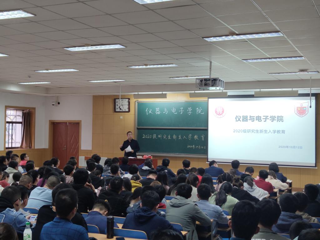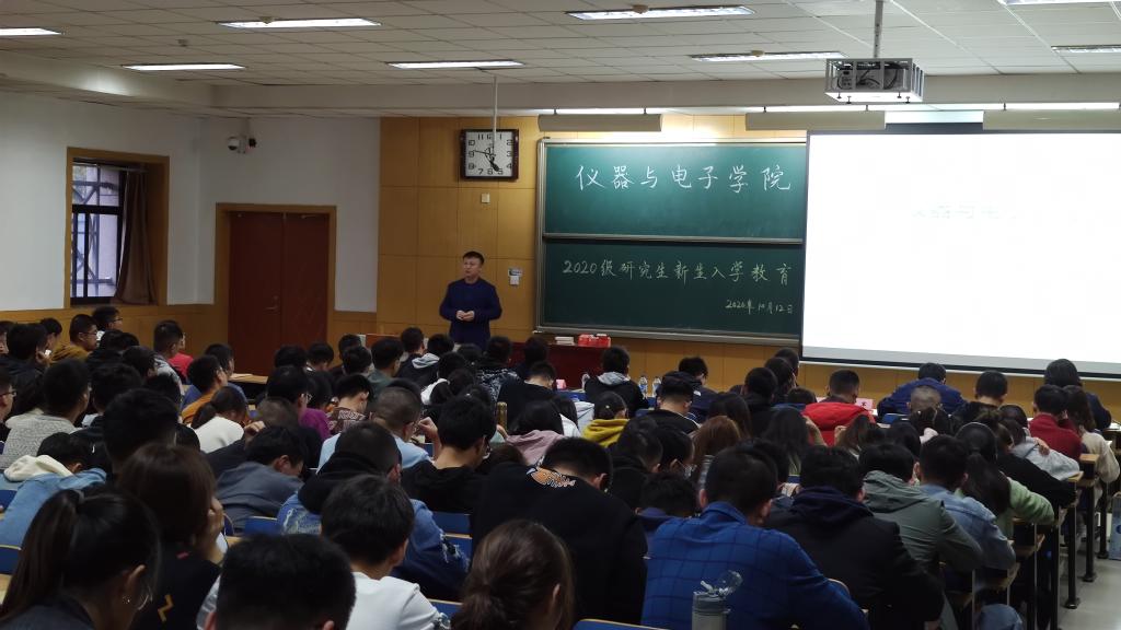 和学科的历史沿革、发展演变和仪电气质,大力倡导新青年创造“两个人生”、锻炼“三个能力”,引领青年研究生要始终饱含爱党爱国的深厚情怀,坚定秉承创新开放的精神气度,不断发扬勤勉实干的工作作风,勇于担当科技强国的时代重任。之后,其他院领导分别讲解了仪器科学与技术、电子科学与技术两个一级博士授权学科的特色建设、主要成果、发展前景及就业形势等情况,宣讲了研究生学位条例、硕士直博政策和要求、评优奖励制度和办法、违纪违规处分条例等内容,学生关心关注的内容进行讲解;强调了禁止学术道德败坏、学术行为不端的现象,要求研究生高度树立保密安全意识,警醒同学们坚守底线思维,坚决远离网络平台贷款,时刻警惕电信电话电脑等各类新型诈骗,积极做好疫情防护与防控工作及肺结核等传染病及流行病的筛查、治疗和预防,基本对研究生新生同学们在思想政治、学科专业、学术道德、安全与保密、奖励政策、推免政策、校规校纪及疫情防控、传染病预防等等方面进行了全方位、全覆盖教育和引导。