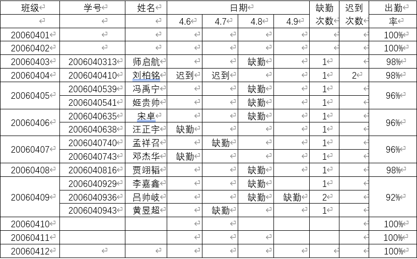 3、本周被误报者请找各班主任反馈给学风建设部相关人员更正(请保留一周)