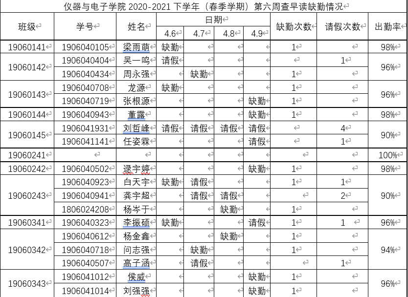 3、本周被误报者请找各班主任反馈给学风建设部相关人员更正(请保留一周)