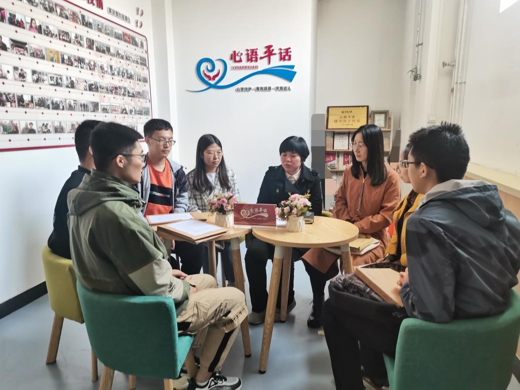 党委副书记杜瑞平主持的“心语平话”辅导员工作室里正在进行着入党前的谈话。一份份入党材料、一句句入党誓言、一张张青春面庞让以思想铸魂、成长导航的工作室更加有正能量。
