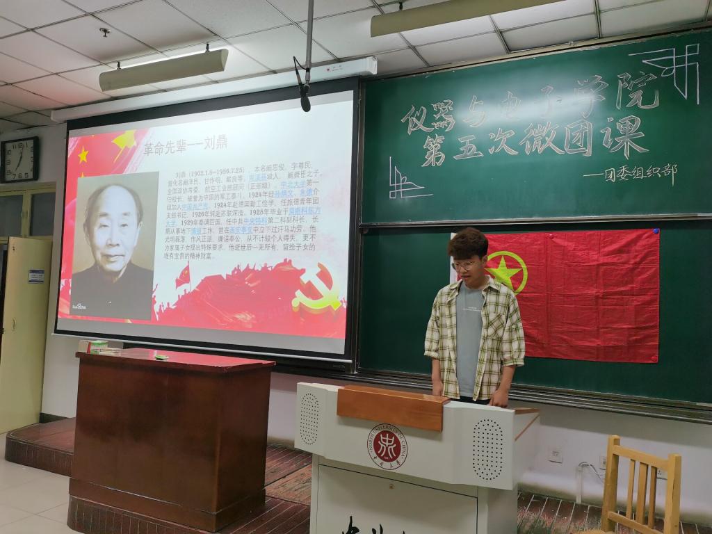 接下来进行分享的是20060410团支部的团支书,他通过刘鼎老前辈的生平故事,由刘鼎前辈浓墨重彩的一点带入了过去那段岁月的完整一面。带领同学们走进刘鼎老前辈的一生。生动具体地展示了如刘鼎前辈一样的革命先辈所展现出的他们独有的从那段艰苦岁月中所磨练出的革命精神。激励大家想革命先辈学习,向伟大的先驱致敬。