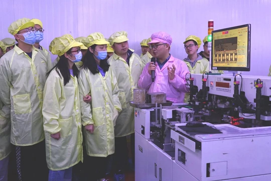 师生一行参观了华杰光电LED显示屏车间、华兴电子封装车间,详细了解了产品特性、工艺流程等诸多方面的知识,让同学们零距离体验了从原材料到成品的生产全过程。参观过程中,讲解人员也对同学们提出的各种问题进行了耐心细致的答疑解惑。