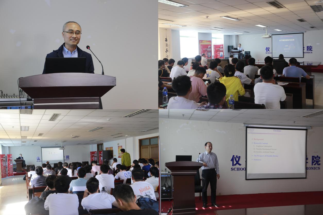 94级校友、国家杰青北大喻俊志教授为大家进行了《水下视觉感知与应用》为主题的学术讲座,生动地介绍了目前水下机器人应用领域的现状,并分析了水下机器人作业需要解决的重要问题,最后对未来研究方向和工作重点进行了分析和展望。清华任天令教授以《智能柔性传感技术》为主题,从石墨烯的制备、眼内压传感器、人造咽喉等几个方面介绍了基于石墨烯的可穿戴式传感器的发展,用大量的实验数据及实验成果向我们展示了石墨烯传感器未来的巨大潜力。