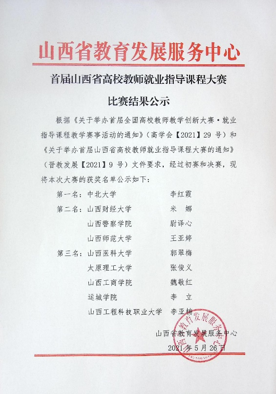 5月26日,山西省教育发展服务中心公布首届山西省高校教师就业指导课程大赛结果,催眠av