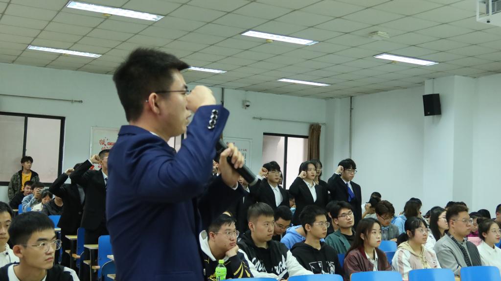 在新任学生会主席张智杰的带领下,新一届学生干部们进行了激昂而真诚的集体宣誓,展现了自己对未来工作的信心与决心,展示了新一届学生干部饱满的工作热情。随后新一届团委副书记马志诚对新一年的工作进行了展望,对未来工作进行了系统详尽的工作安排。
