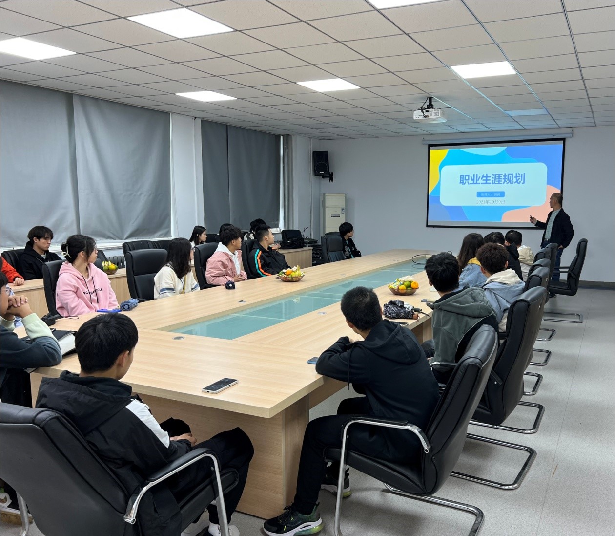教授郭涛老师与本科成长导师班的24名同学进行了成长导师见面会。会议在14号楼4层会议室进行。
