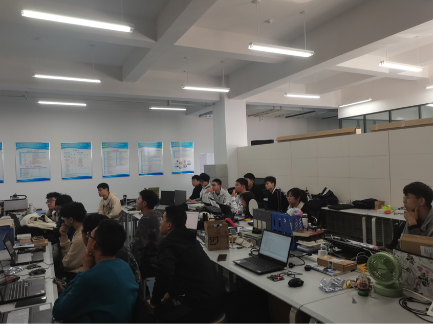 2021年10月30日,集成电路创新实验室成功进行了2021级新生第五次集中培训讲解,全体2021级新生与实验室负责人参与了这次培训,本次培训由郑忠浩讲解,这次培训的是按键和蜂鸣器,郑忠浩学长通过详尽的ppt,仔细地讲解了按键和蜂鸣器的原理,以及有源蜂鸣器和无源蜂鸣器的作用,之后负责人郑忠浩又一步步的带领新生写了程序,将按键和蜂鸣器的知识结合运用。课堂气氛良好,21级新生积极踊跃地参与其中,学习热情高涨。