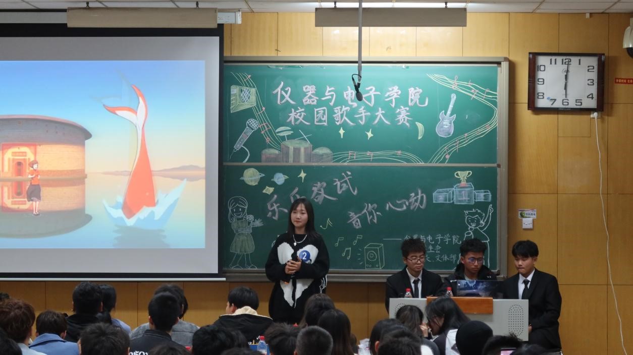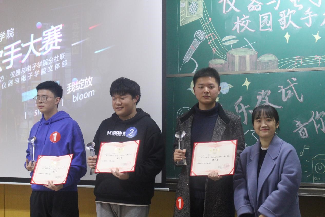 团委姚瑶老师为我们带来了歌曲《稻香》,在台下观众闪光灯的点缀下,在姚瑶老师动听的演唱下,大家紧张的心情得到舒缓。在最后激烈的竞争下,决赛名单终于知晓。紧接着最后一轮决赛开始,冠军的争夺战开始,金颉凭借一首《天后》打动了台下的观众,取得了冠军,姚嘉详和苗云鸿取得亚季军。最后,在激烈的掌声下,在欢快的氛围中,颁奖环节顺利进行并标志着本次歌手大赛的圆满结束。