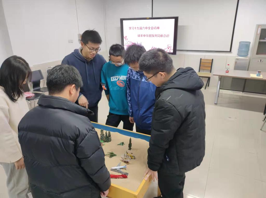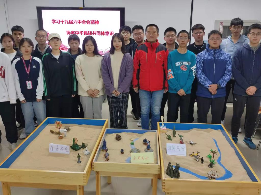 于11月16日开展了“学习十九届六中全会精神 铸牢中华民族共同体意识”团体沙盘活动。该活动共分“有朋自远方来”、“我们为什么能够成功”、“我们怎样才能继续成功”三个部分。