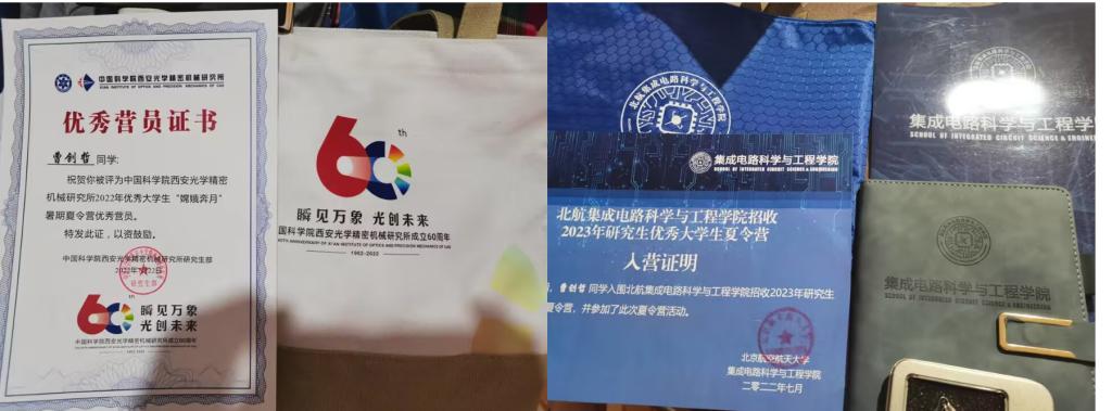 西安光学精密机械研究所,在这几所高校中我拿到了优秀营员。