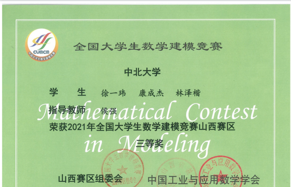 在2021年,为了在国内最权威的数学建模比赛中获得好的名次,我将课余时间基本上全投入到数学建模中,与队友们磨合,学习建模知识,提高编程水平,学习优秀论文,同时参加了一个山西省的数学建模比赛作为练手。我和队友们以及我们的指导老师对这个比赛的目标都是取得国家级的奖项,但很可惜,我们这个比赛只取得省级三等奖。成绩出来时,我已经大三上学期结束了,我已经参加了四次数学建模的大型比赛了,但我始终没有得到一个好成绩。