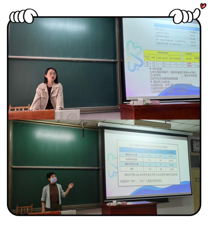 学科优势、近两年招生情况以及复试过程中的注意事项;随后,李红霞老师分析了当前考研形势,介绍了各个专业近三年考研基本情况,强调了考研的重要性,鼓励热爱科研的同学们继续学习深造,并希望同学们考研征途上,能坚守初心、坚定信心、坚持恒心,最终一战成硕。