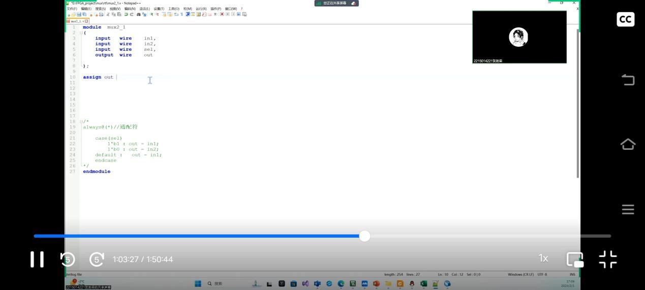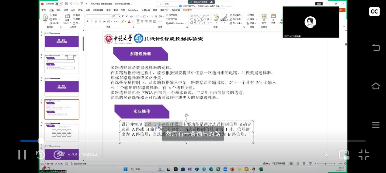 在本次培训中贺则荣主要介绍了组合逻辑电路、多路选择器和381码器、RTL仿真代码设计等方面的内容。会议还详细讲解了二选一选择题、波形绘制、随机数生成等操作步骤。最后,介绍了381码器和310码器的原理。通过当堂讲解和当堂答疑,帮助了同学们快速掌握了有关内容,同时引导同学们对上节课的内容进行系统复习。