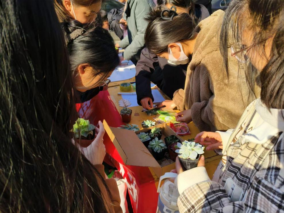 精心挑选的小绿植。有同学表示“谁初春的时候不想拥有一盆清新可爱的小植物呢。”这一环节不仅让同学们体验到了种植的乐趣,更是让绿色环保的理念深入人心。
