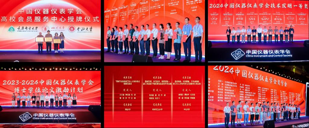 仪器科学与技术学科团队获得中国仪器仪表学会高校会员服务中心、2024中国仪器仪表学会技术发明奖、2023-2024中国仪器仪表学会高等教育教学成果奖、2024中国仪器仪表奖学金等多项荣誉。靳昊宇、周子悦、周广宇、赵馨瑜、卫娜瑛五名同学荣获2024中国仪器仪表学会奖学金。大会邀请刘俊教授为荣获2023-2024中国仪器仪表学会博士论文激励计划的博士生颁发了获奖证书。
