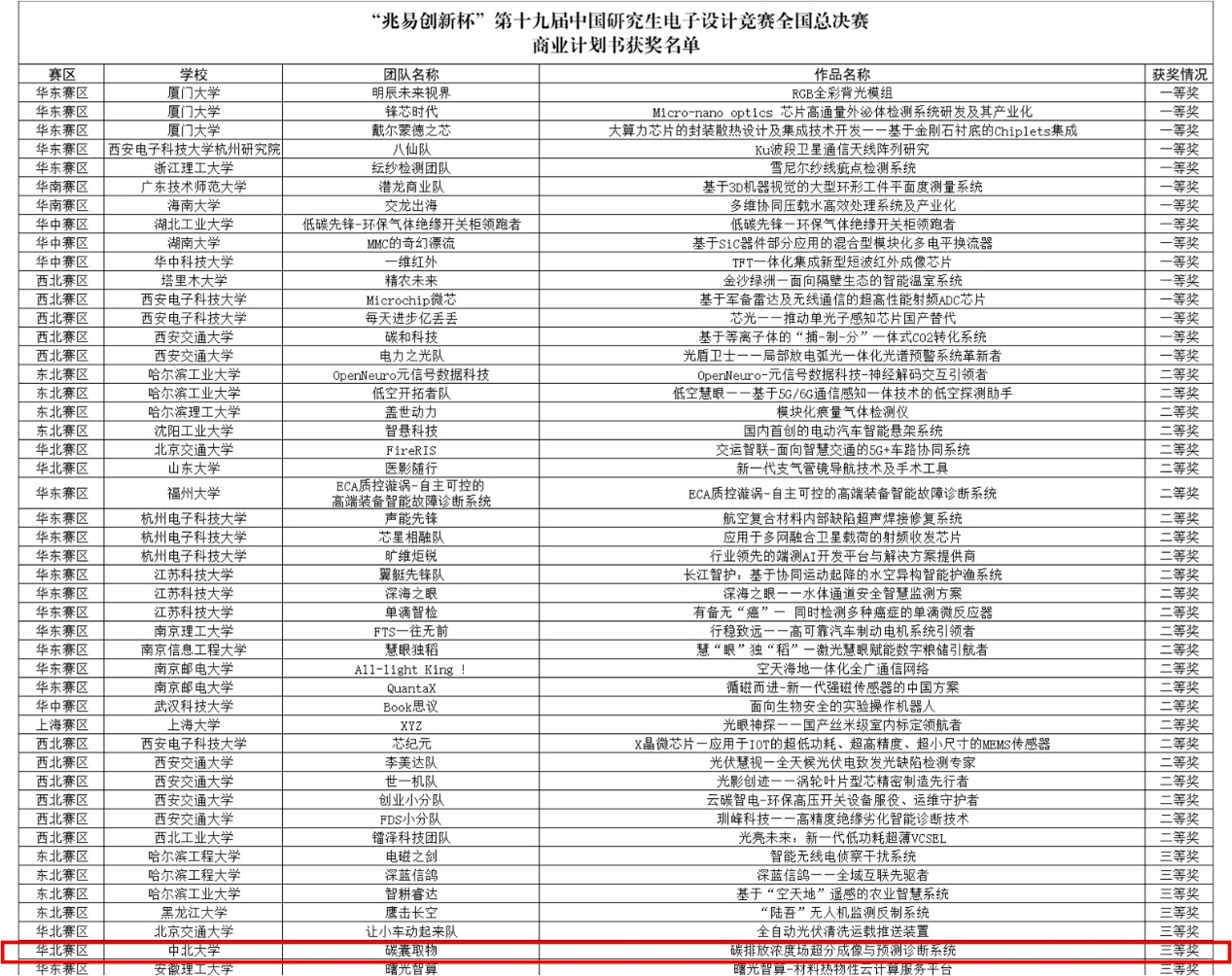 取得了全国技术竞赛团队一等奖一项、全国商业计划书团队三等奖一项、“兆易创新”企业命题三等奖一项的优秀成绩。