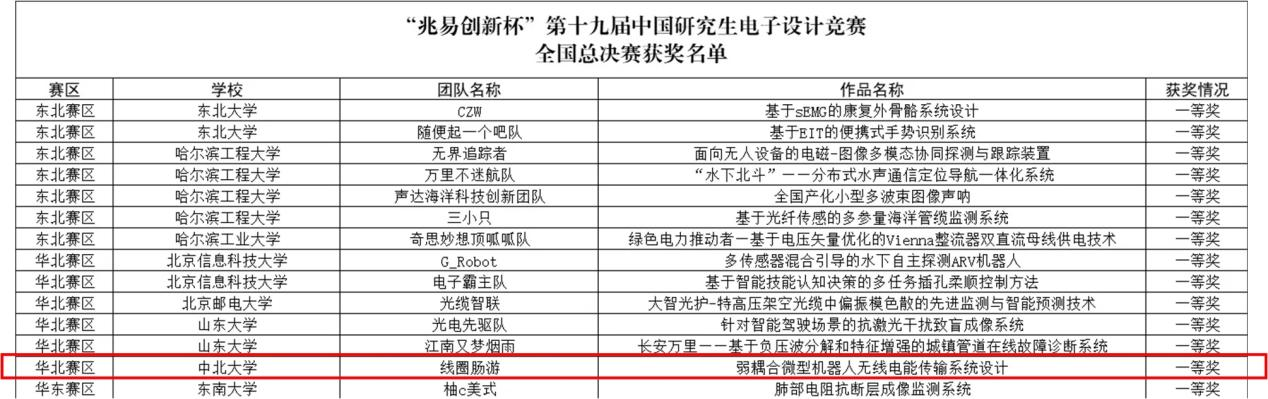 研究生卢晨智、钱瑞琛、马欣瑜三位研究生组成,作品名称为《弱耦合微型机器人无线电能传输系统设计》,项目以面向人民生命健康为基点,以胶囊内镜发展中的能量供应痛点问题为切入点。提出了具备电磁安全性能量发射线圈优化模型、具备温升安全性的有限空间接收线圈优化模型和新型电能管理电路,成功解决了电能传输稳定性问题、机器人工作的短时尖峰功率需求和电能传输安全性三大技术难点。最终成功设计出弱耦合微型机器人无线电能传输系统样机,能够为胶囊内镜稳定供能,为下一代胶囊内镜供能问题提供了解决方案。指导教师高晋阳获得优秀指导教师。