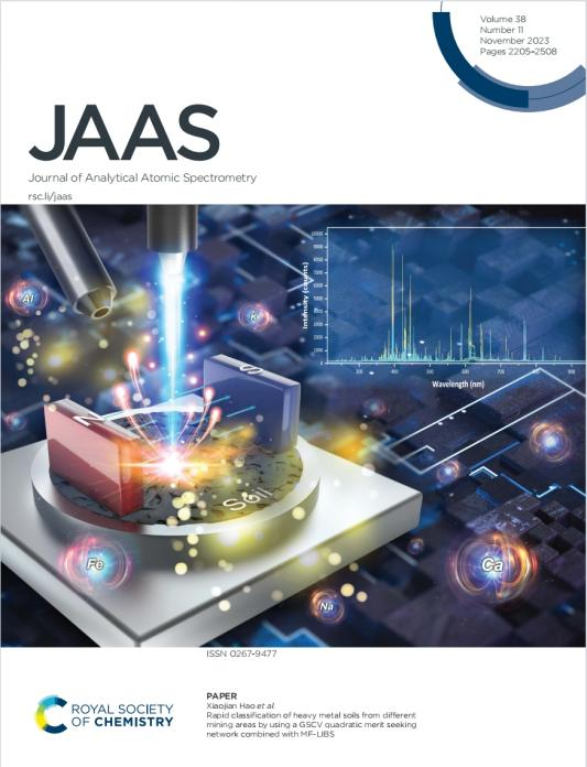 在此之前,该团队2021级硕士研究生靳昊宇在郝晓剑教授的指导下,以“固液样品光谱增强及定性分选的LIBS光谱智能分析方法”为题展开研究,在激光诱导击穿光谱分析领域发表SCI/EI高水平论文7篇,其中第一作者身份在SCI光谱学1区期刊Journal of Analytical Atomic Spectrometry发表论文2篇(其中1篇被选为封面文章、1篇入选JAAS-2024-Hot Article并被选为封底文章)。