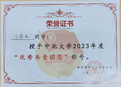 三好学生,优秀共青团员等称号,国家一等奖三项以及其他奖项若干。