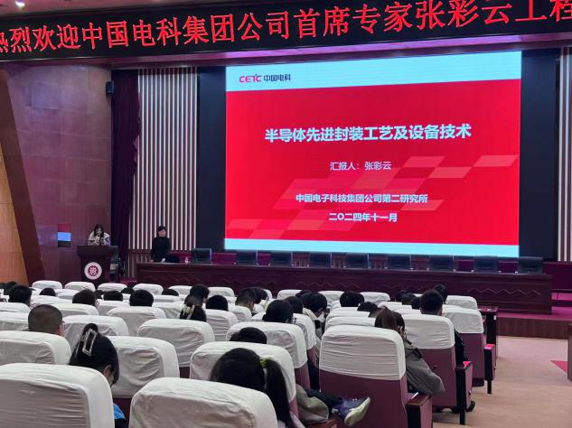 在图书馆五层学术报告厅举行本年度第3次华彩讲坛。本次讲坛邀请中国电科集团首席专家张彩云工程师,介绍半导体先进封装工艺及设备技术研究前沿,为半导体相关专业研究生提供了学术指引,吸引了广大相关专业研究生到场参加。