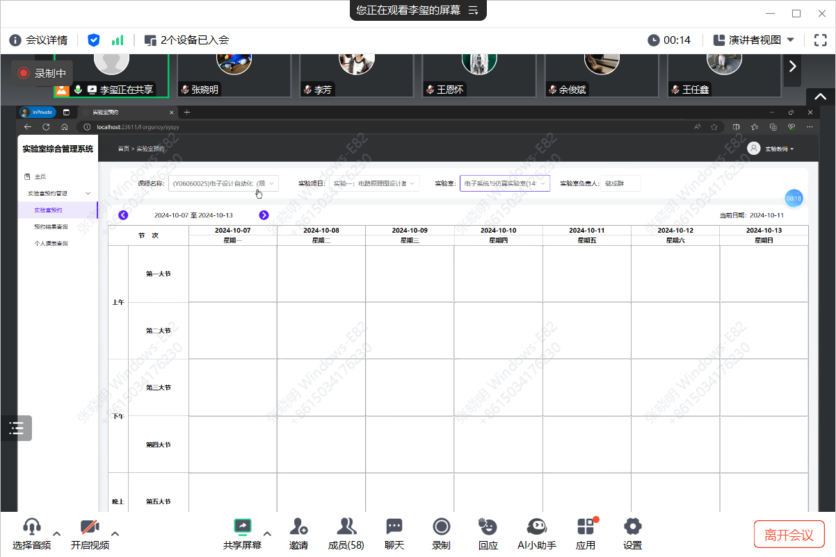 2024年10月11日下午,张晓明老师主持召开了实验预约系统操作培训的线上会议,需在示范中心上课的各催眠av 教师及实验室室负责人积极参会。