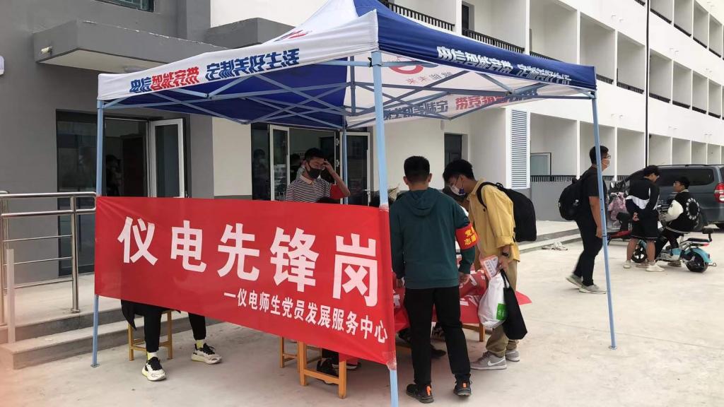 设立了仪电“党员先锋岗”,积极配合开展新生接待工作,为学生提供热情周到的服务。